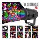 Projetor de Natal Luzes 16 Desenhos 3D Papai Noel Boneco de Neve Luminária Decoração Bivolt