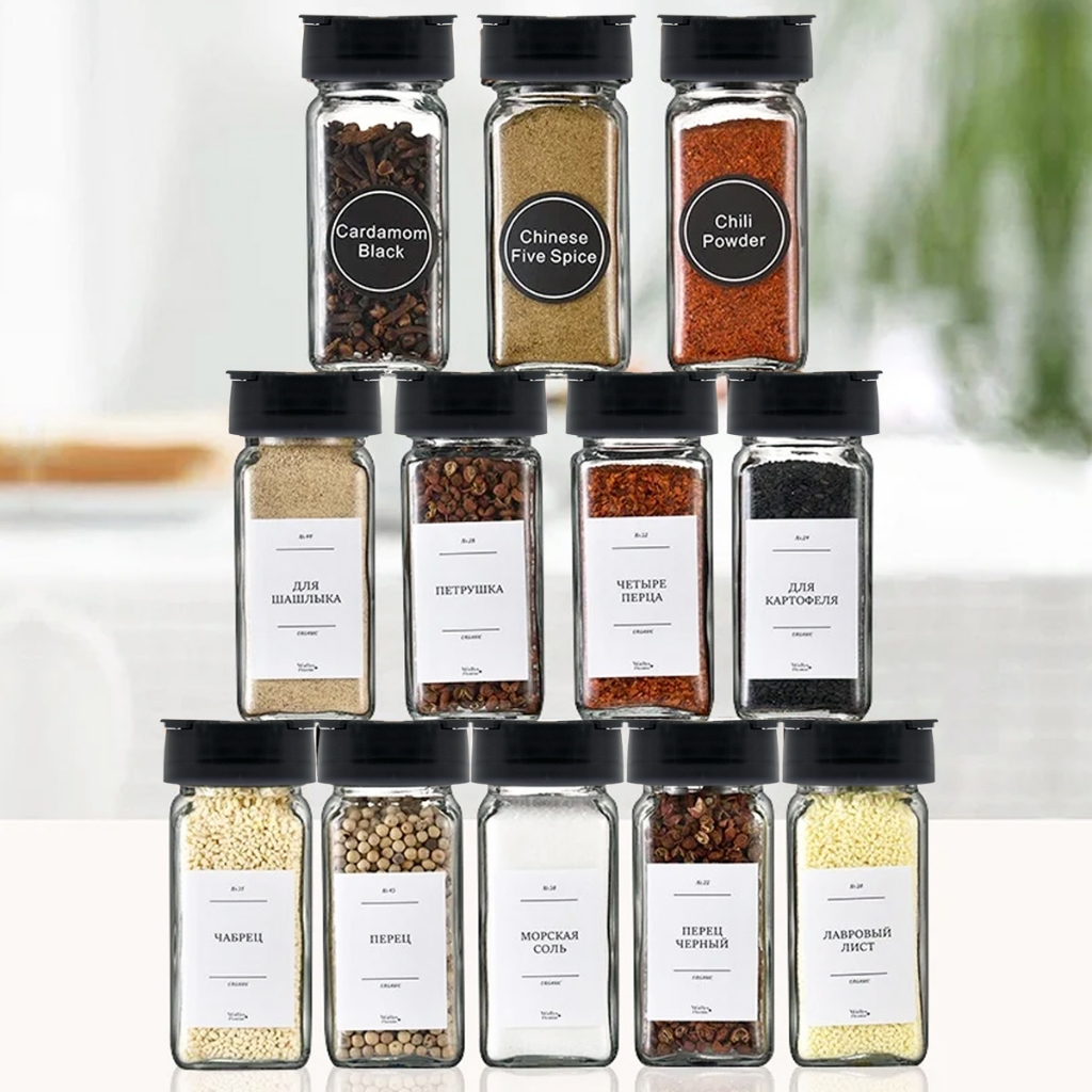 Kit Pote Quadrado De Vidro 130ml P/tempero +Etiquetas e Caneta