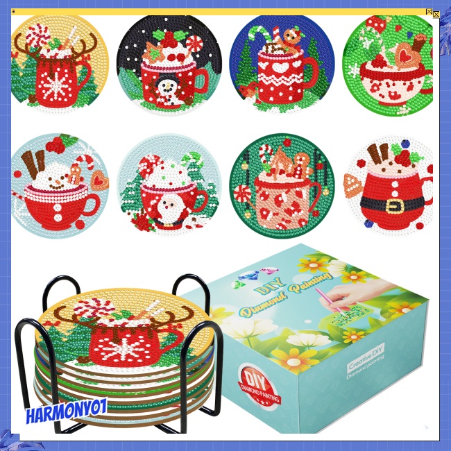 Kits De Bases Para Copos De Natal Com 8 Peças De Diamante Pintura De Arte Suporte Projetos De Artesanato