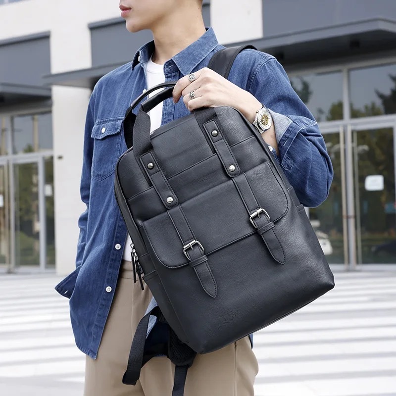 Bolsa Mochila Biaowang Executiva de Couro PU Masculina e Feminina Impermeável