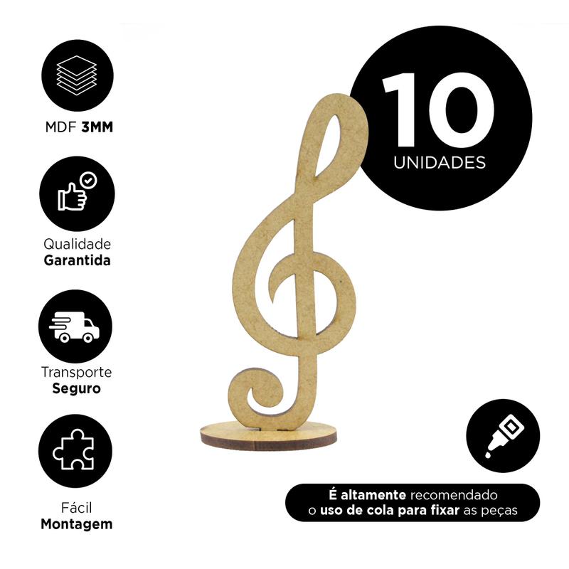 Kit 10 Nota Musical Clave de Sol Decoração Lembrancinha MDF