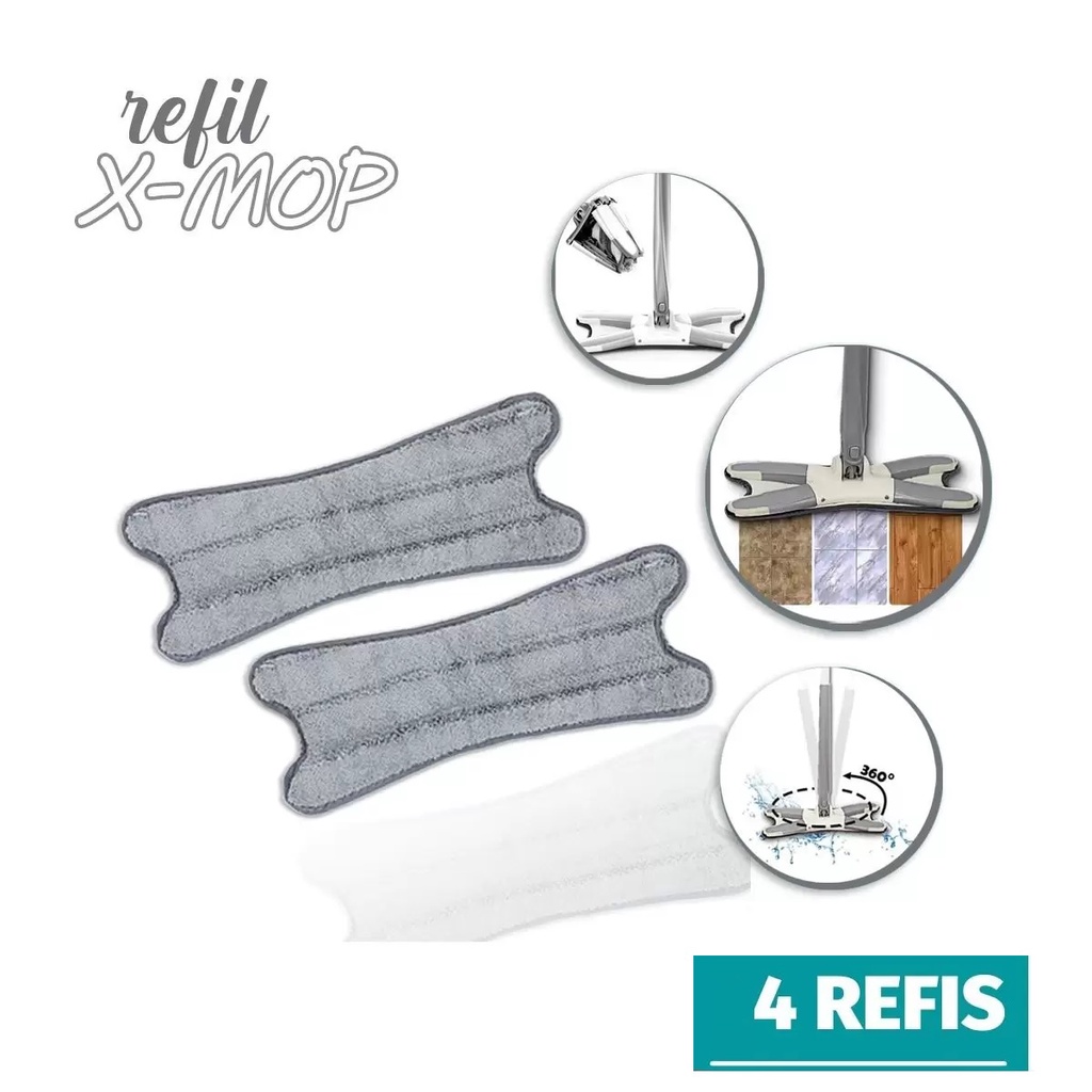 Kit Com 4 Refil XMOP Mop X Twist XMOP Giratório Rodo Lava E Seca Com Extrusão Microfibra Reutilizável