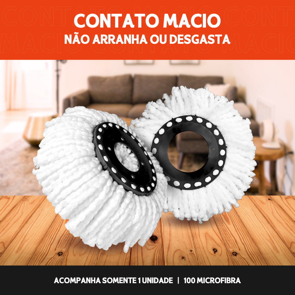 Kit 4 Refil Mop Giratório com Balde 360 Esfregão Universal 16 Cm Original