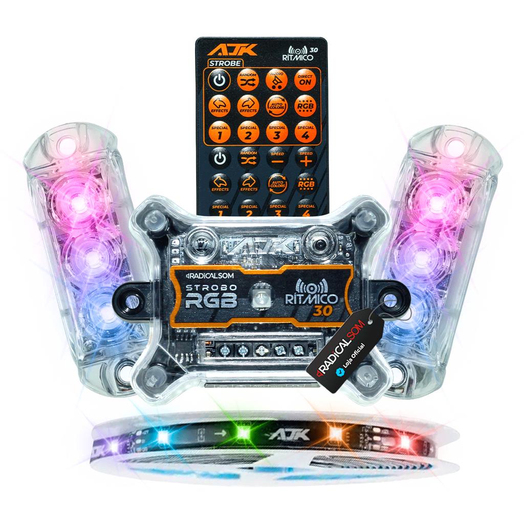 Kit Strobo AJK RGB Rítmico 3.0 + 2 Faróis 6W