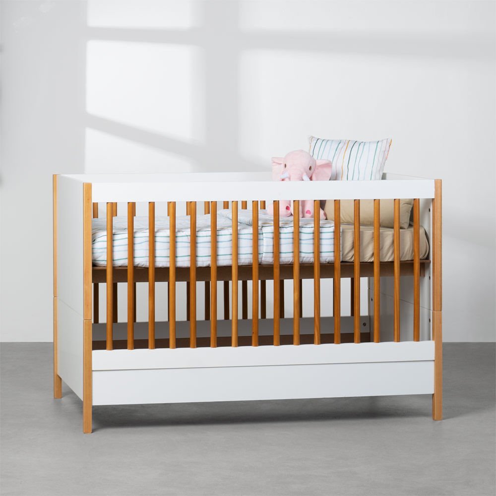 Berço Multifuncional Naná 3 em 1 – Branco e Amêndoa Abra Casa