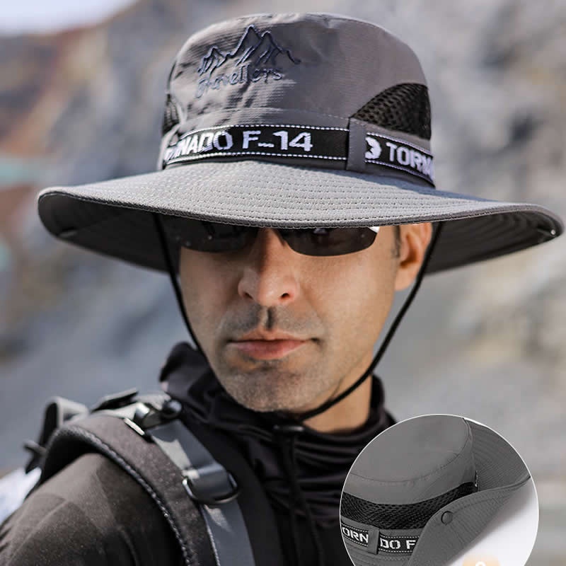 Chapéu De Pescador Masculino Aba Larga Sunhat Summer Outdoor Anti-UV De Secagem Rápida