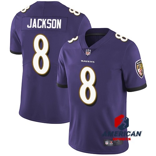 Camisa Masculina De Futebol Americano Baltimore Ravens Lamar Jackson Roxo Limitado
