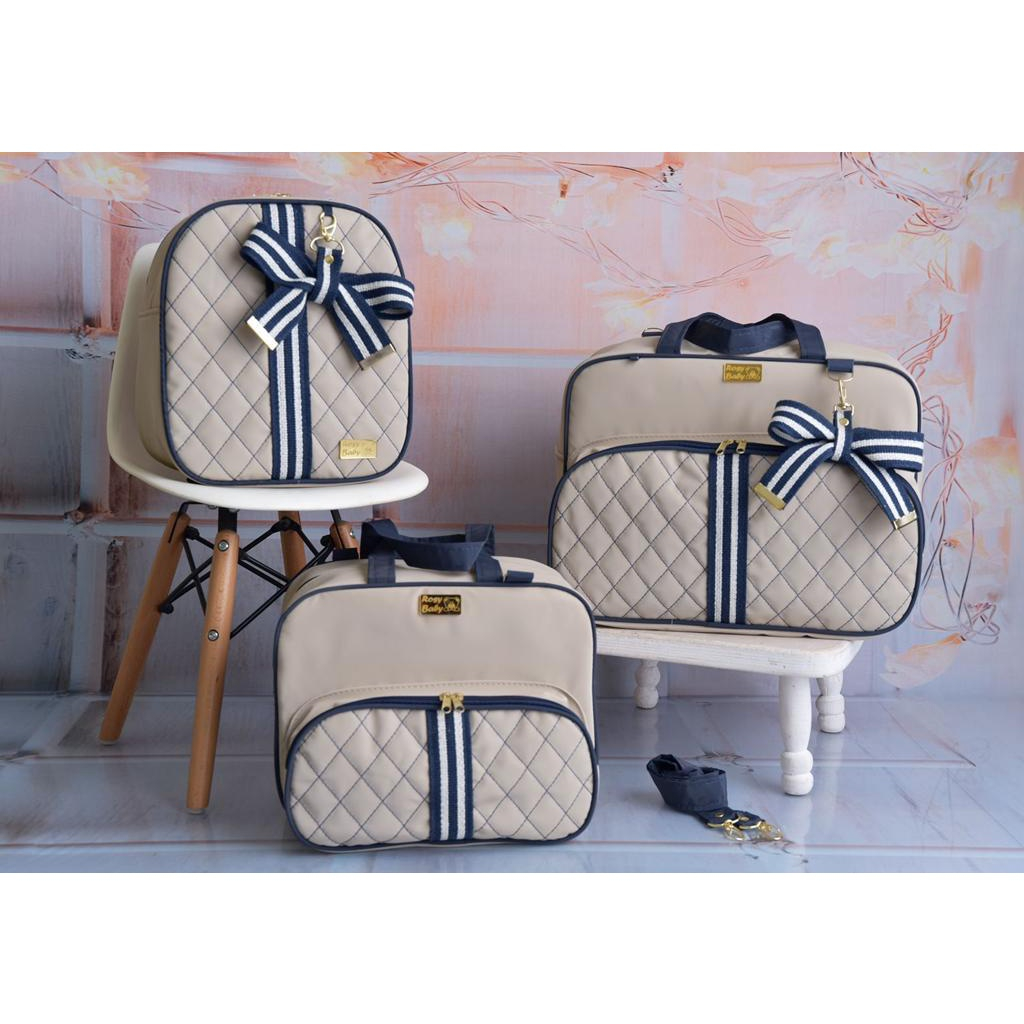 Kit Bolsa Maternidade 3 Peças laço e Faixa Menino/Menina