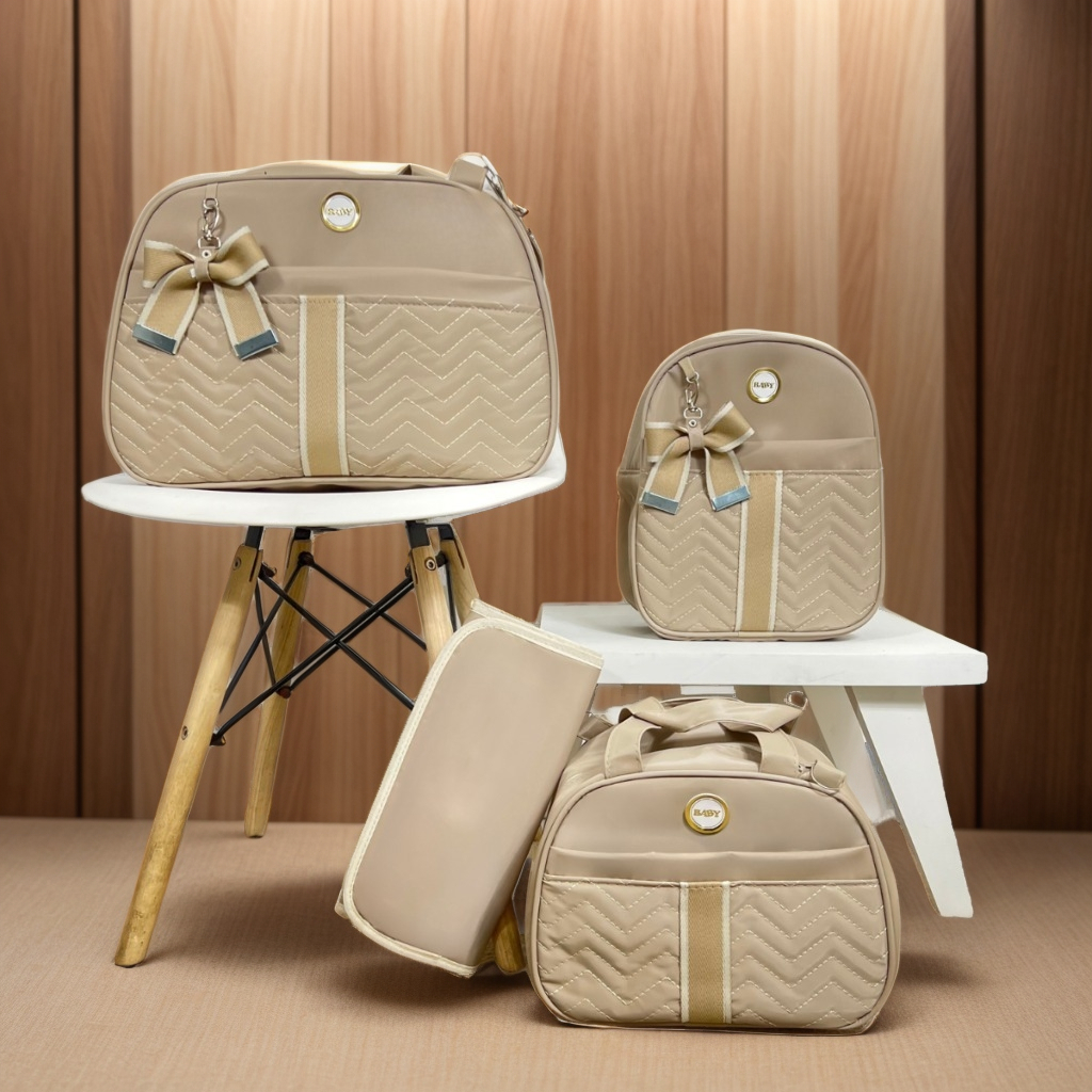 Kit Bolsa Maternidade Com Faixa e Laço 4 Peças Menina/Menino com mochila e trocador