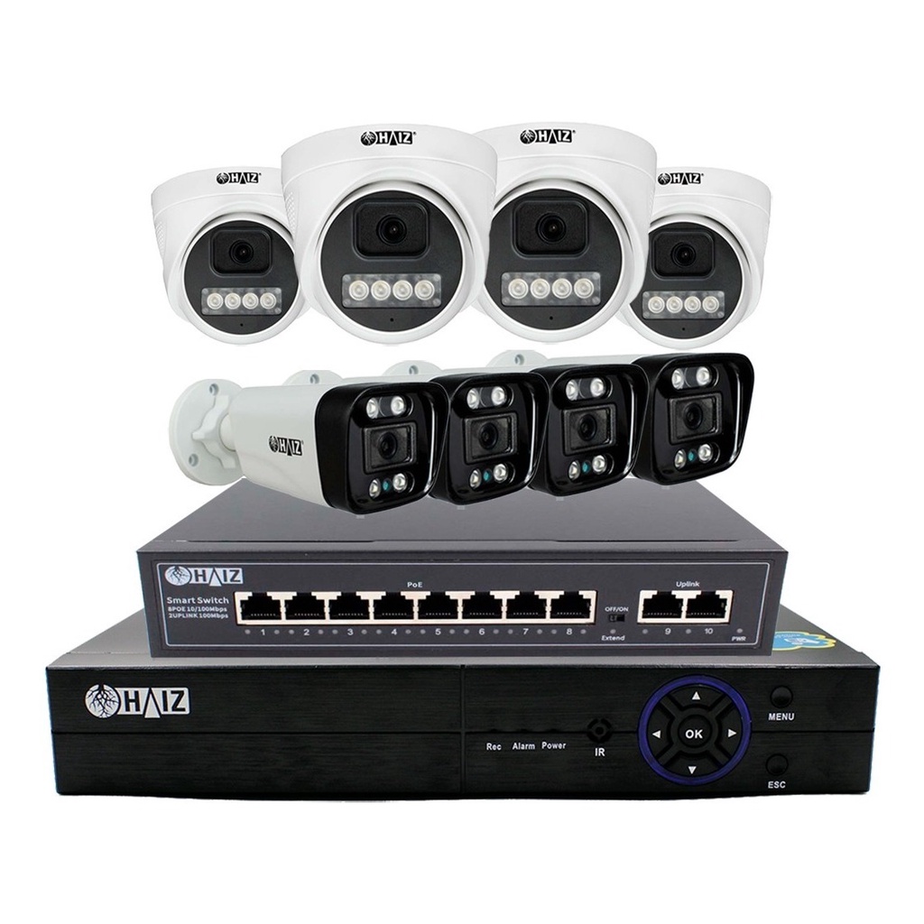 Kit NVR 08 Canais + 8 Câmeras Ip Haiz Segurança Residencial Switch Poe 10-100 Poe 3mp M2 M5 Haiz