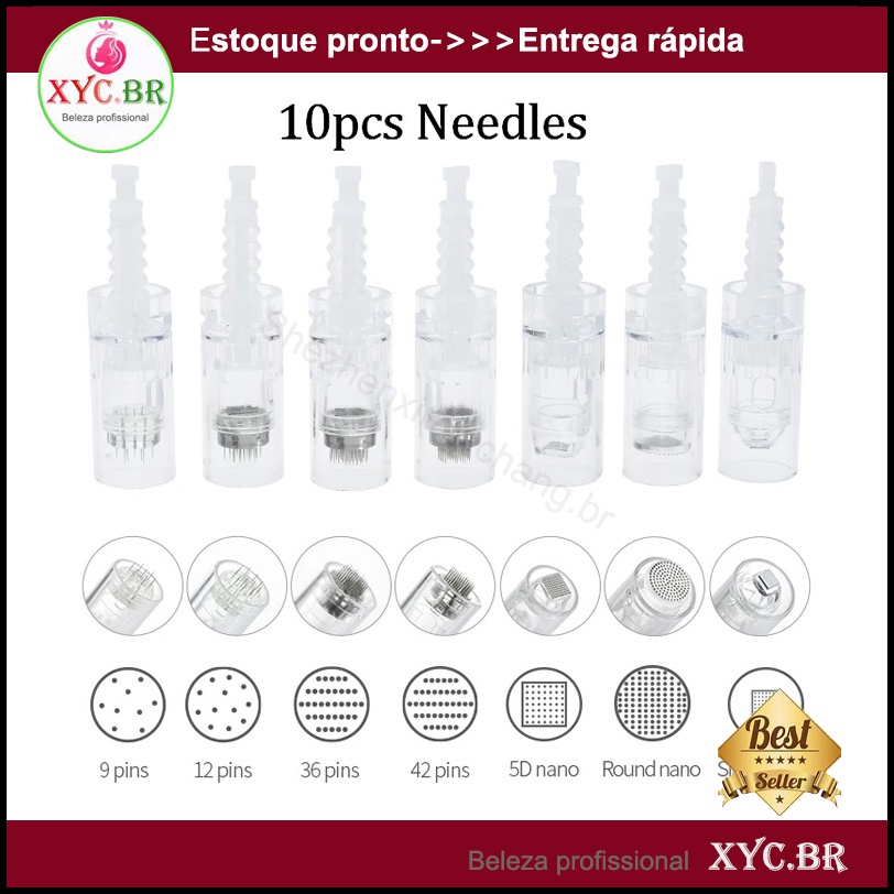 Kit 10 Dermapen Cartuchos Microagulhamento Dr Pen 12 36 42 NANO pontas Micropigmentação Envio Imediato