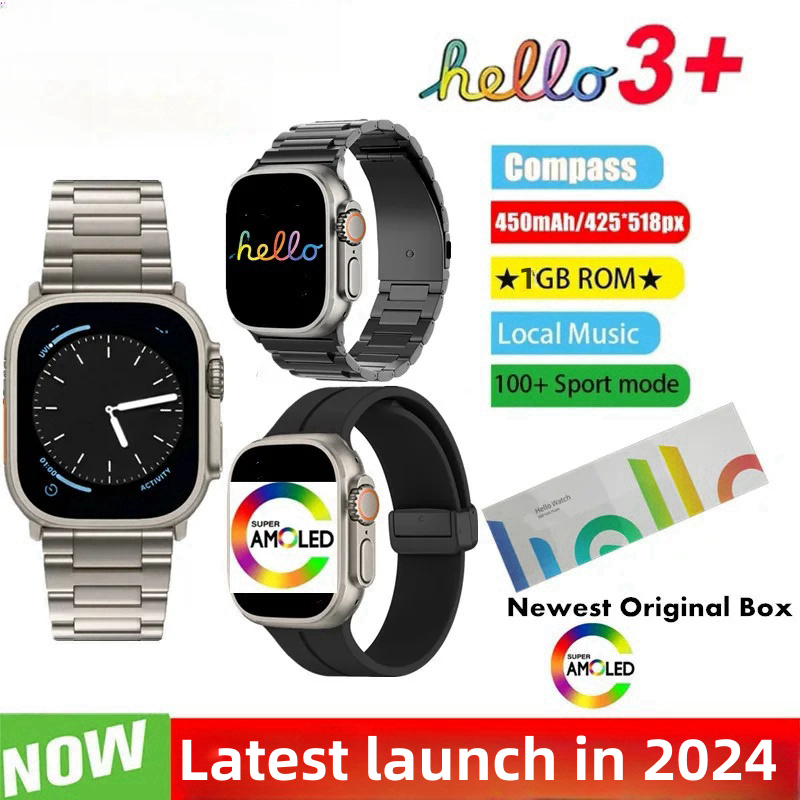 2024 Novo Relógio Original Hello Watch 3 Plus Smart Men AMOLED NFC Compass Smartwatch Sempre Em Display1GB ROM Música Local Para Android IOS