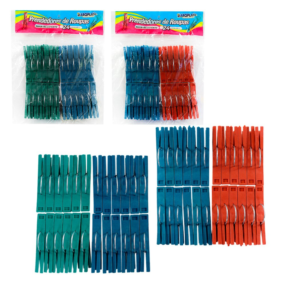 Conjunto de Prendedores Resistente de Roupas com 24 Unidades por Pacote Forte Leve para Estender Roupas Lavanderia Colorido Plástico Econômico Ergonômico