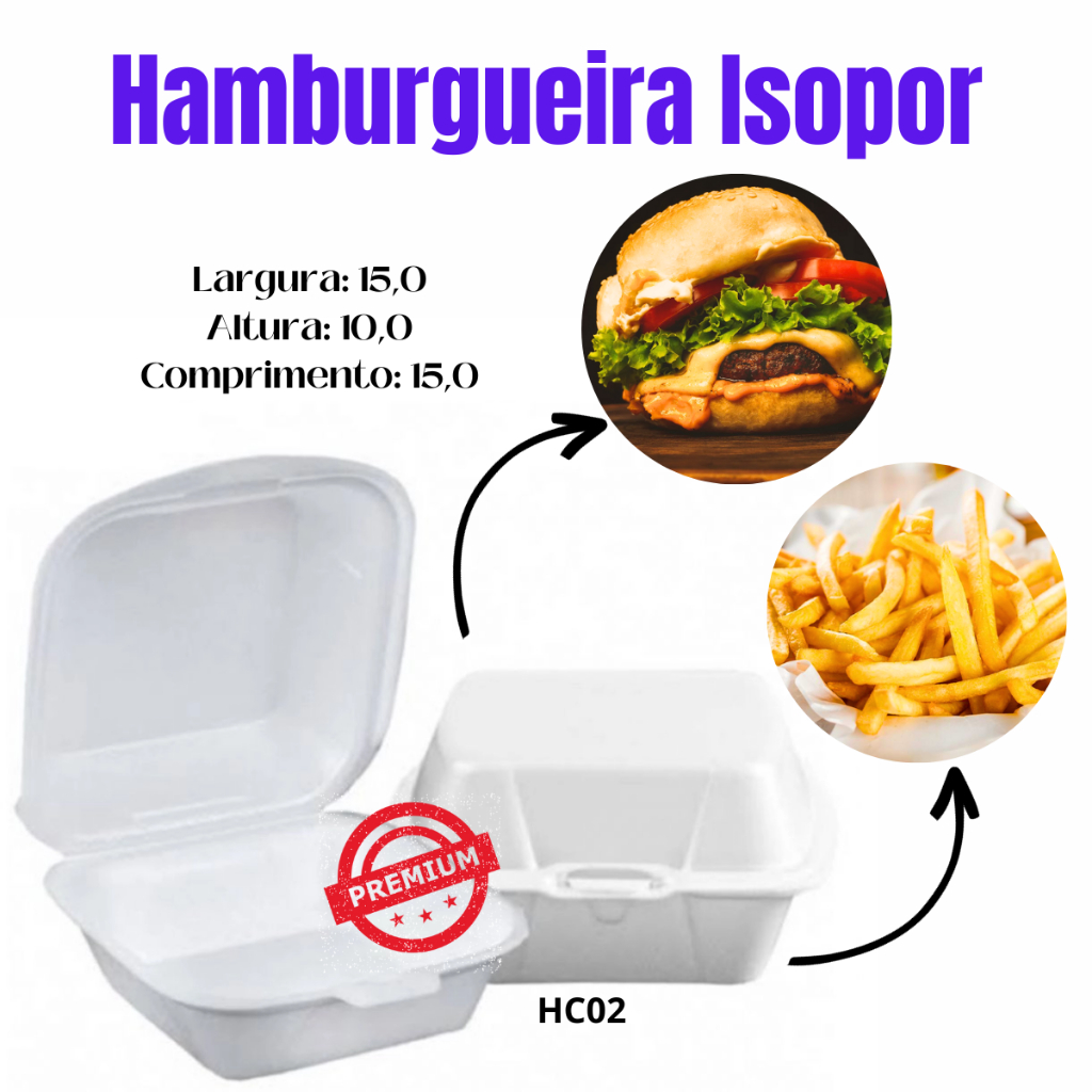 50 Unidades Hamburgueira Embalagem de Isopor Para Hamburguer Sanduíche Batata Frita Uso Delivery - PEQUENA H 01