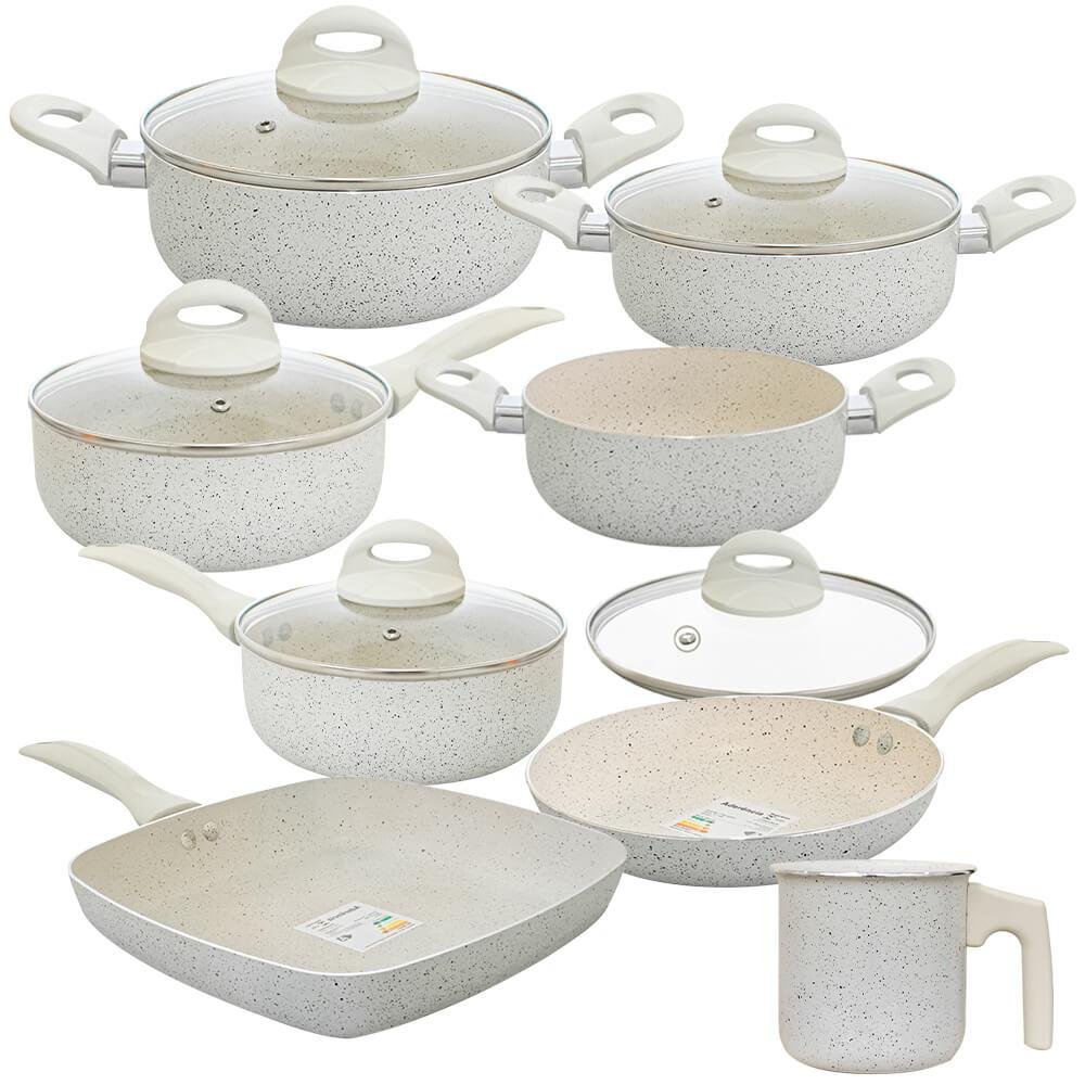 Jogo de Panelas Antiaderente Revestimento Cerâmica Ibiza Vanilla Premium 8 Peças - Casambiente