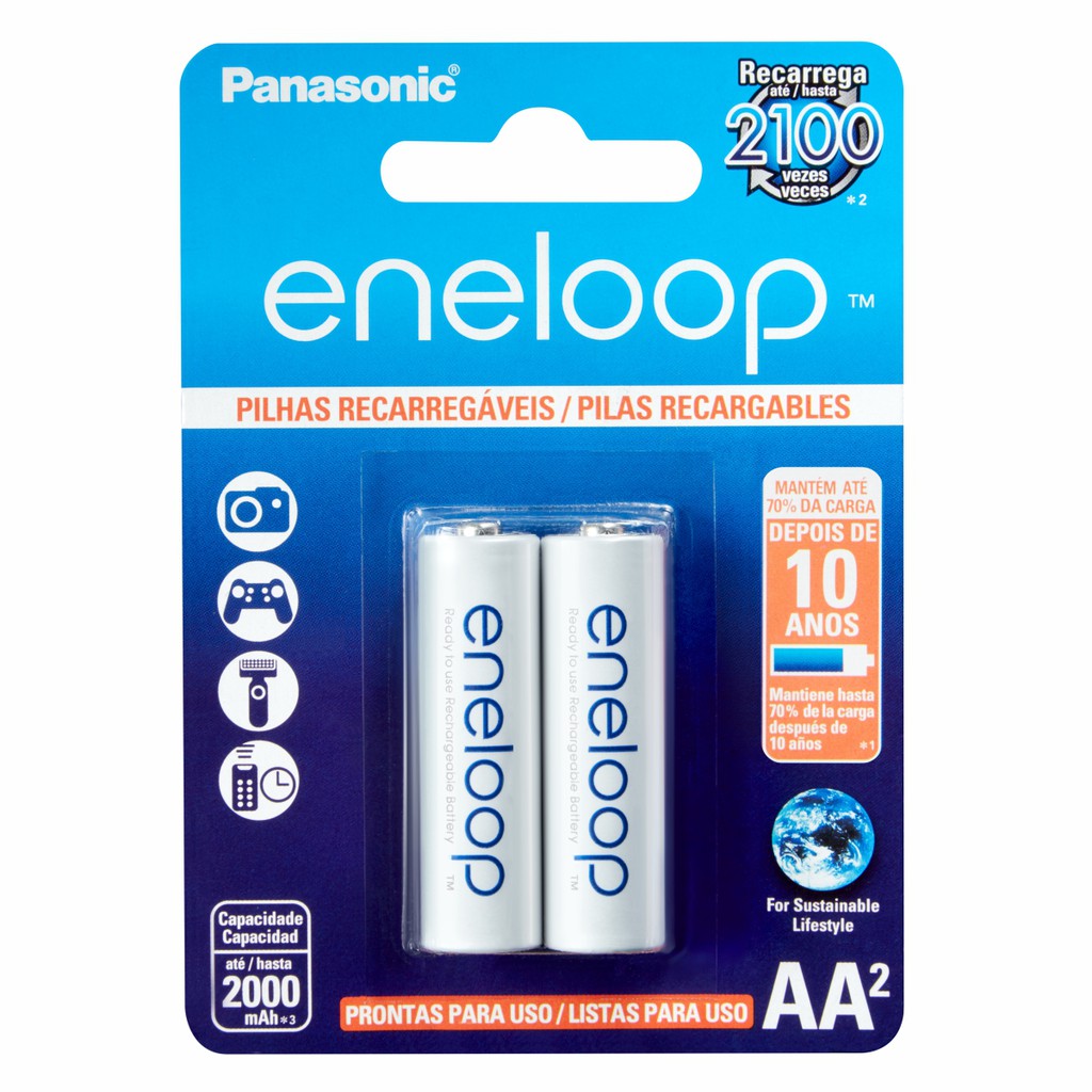 Pilha Recarregável Panasonic Eneloop AA - cartela c/02 unidades