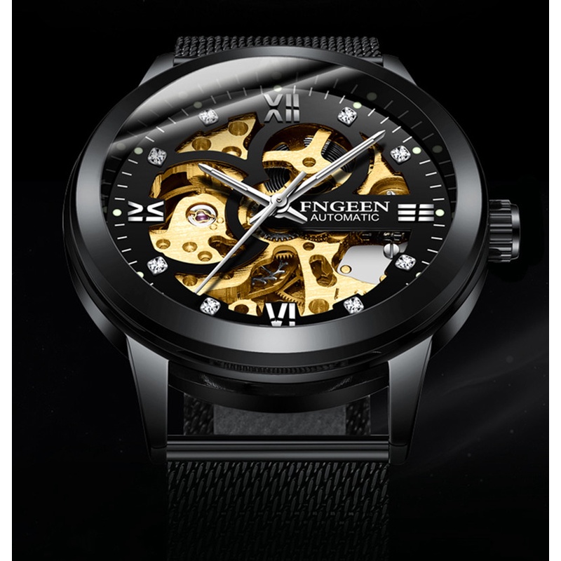 Homens Esqueleto Mecânico Luminosa Assistir Top Marca De Luxo Automático Relógios Dos Pulseira De Malha De Aço Inoxidável Assista Relogio