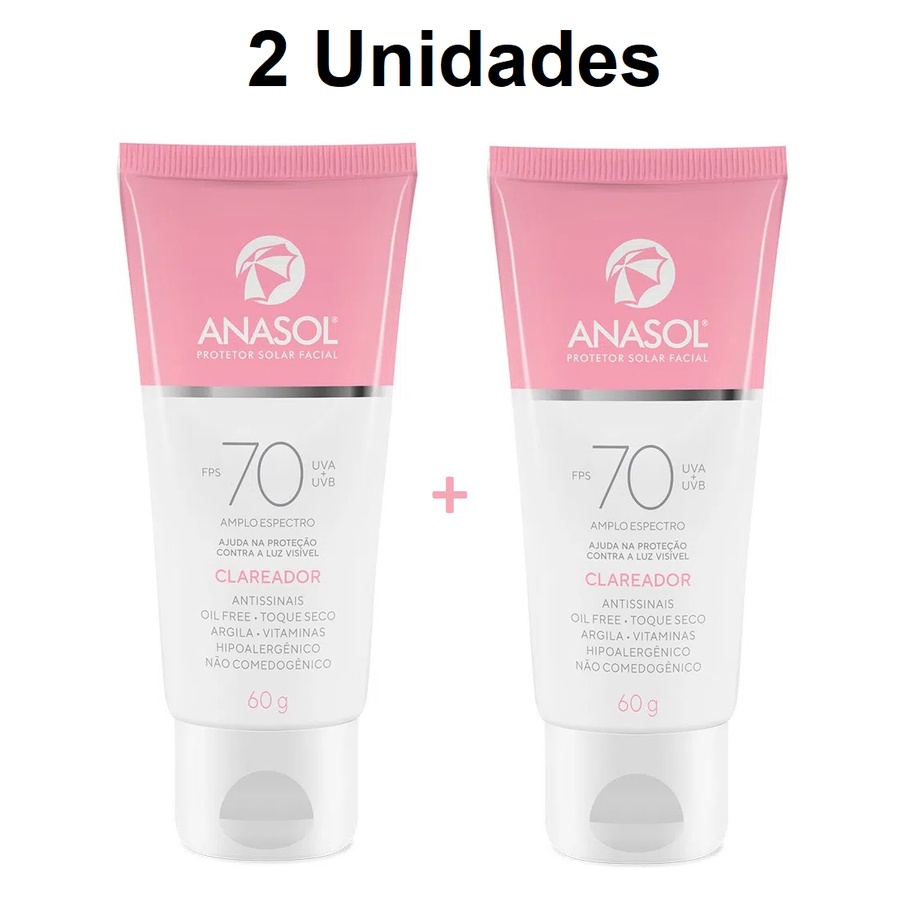 Kit 2 Protetores Solar Clareador Facial Anasol FPS 70 UVA Vegano 60g