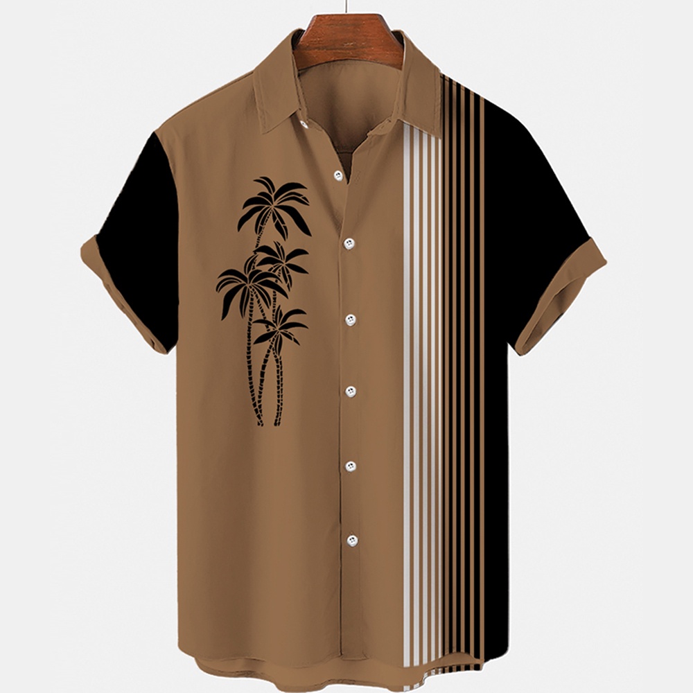 Camisas Para Homens Listras De Coco Havaianas 3D Impressão Camisa Um Botão Moda Casual Colorida Blusa Solta Quick Dry Clothing