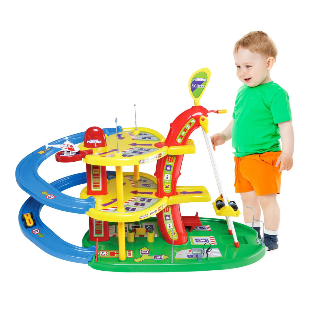 Mega Parking Elevador Pista Radical C/ Carrinho e Helicóptero - Posto Lava Rápido
