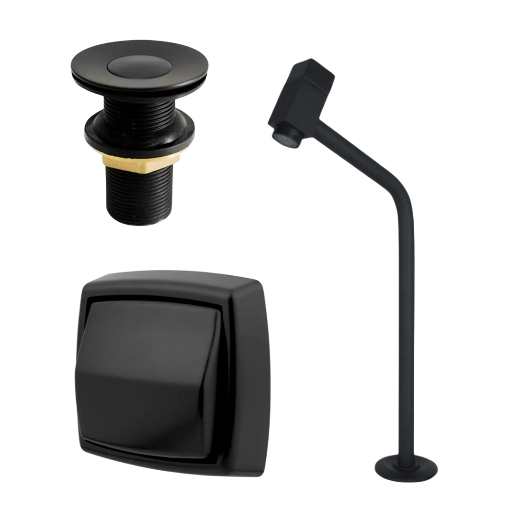 Kit Torneira Link Lavatório Para Cuba Quadrada + Válvula Click Preto + Acabamento P/ Valvula de Descarga Preto