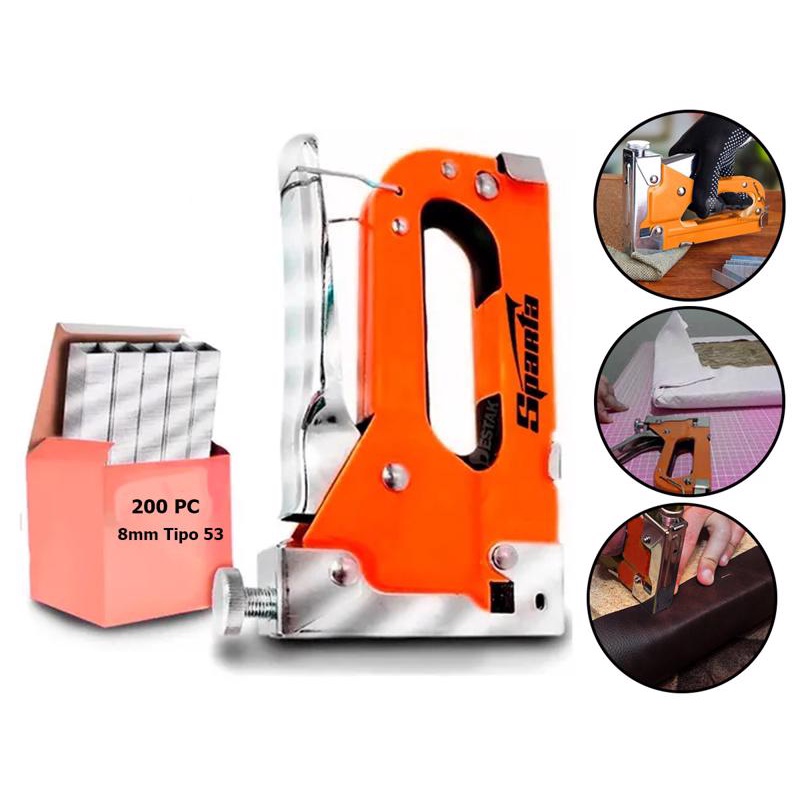Grampeador Tapeceiro Alta Pressão Profissional Manual 3 Em 1 Com 100 Grampos