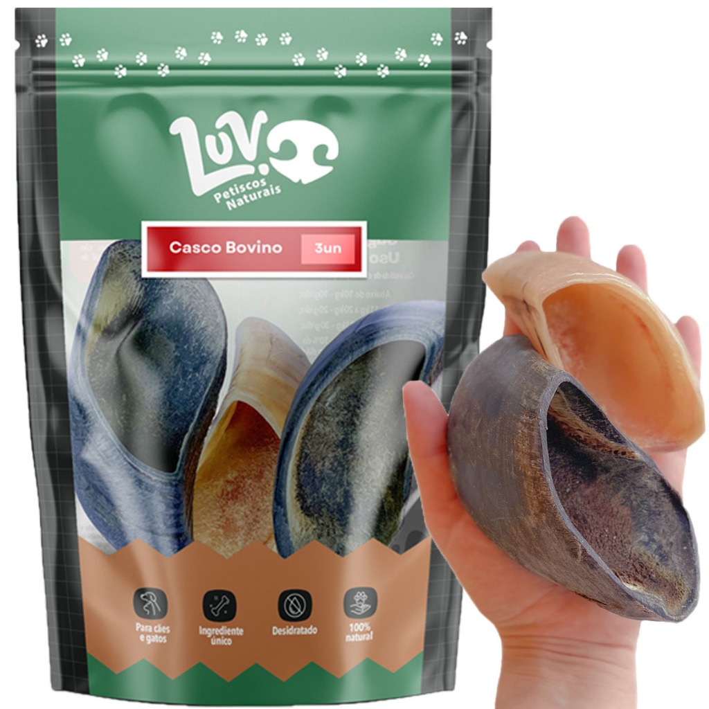 Petisco Natural Cães Casco Bovino Grande Rígido 3un Cachorro Luv Petiscos 100% Naturais Cachorro