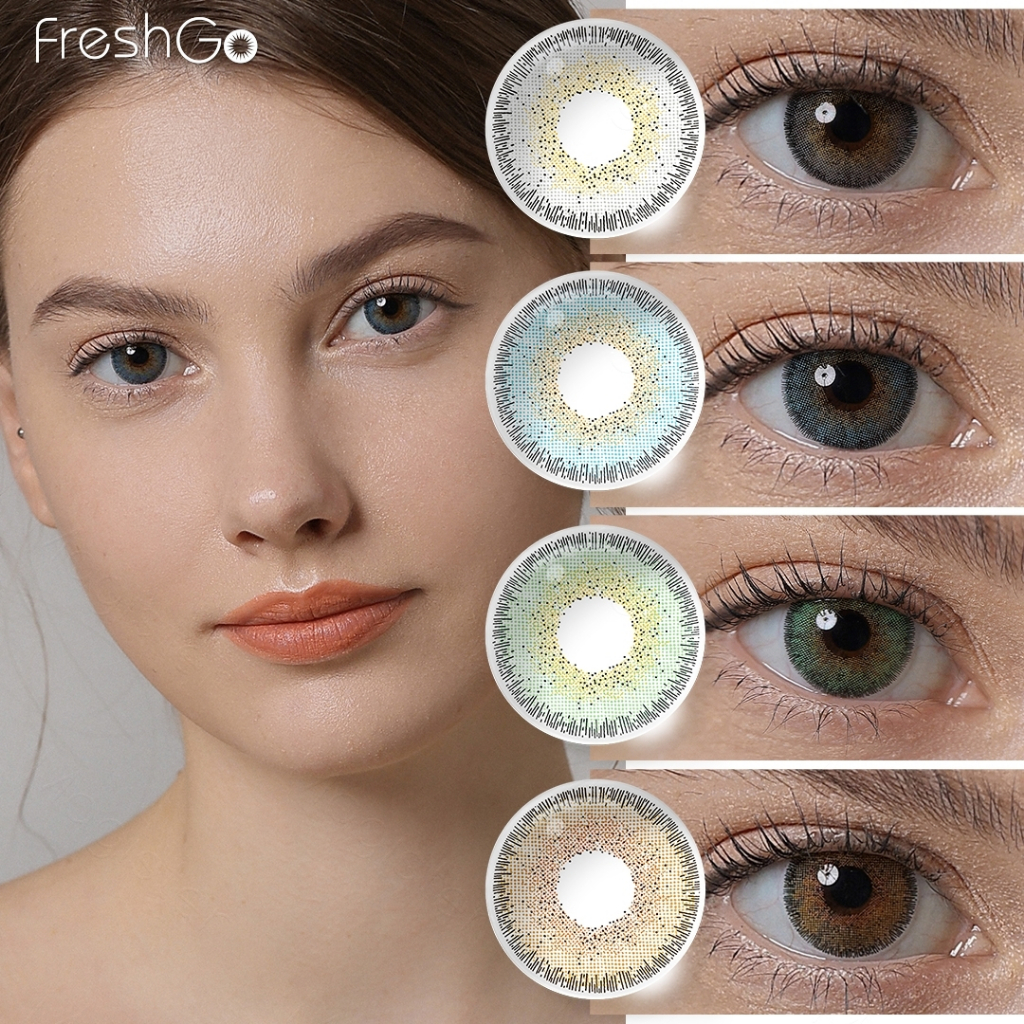 Lente De Contato Colorida Freshgo 2 Pcs PREMIUM Anualmente Lentes Naturais Macias Com Estojo Grátis 14,2mm 40 % Alto Conteúdo De Água