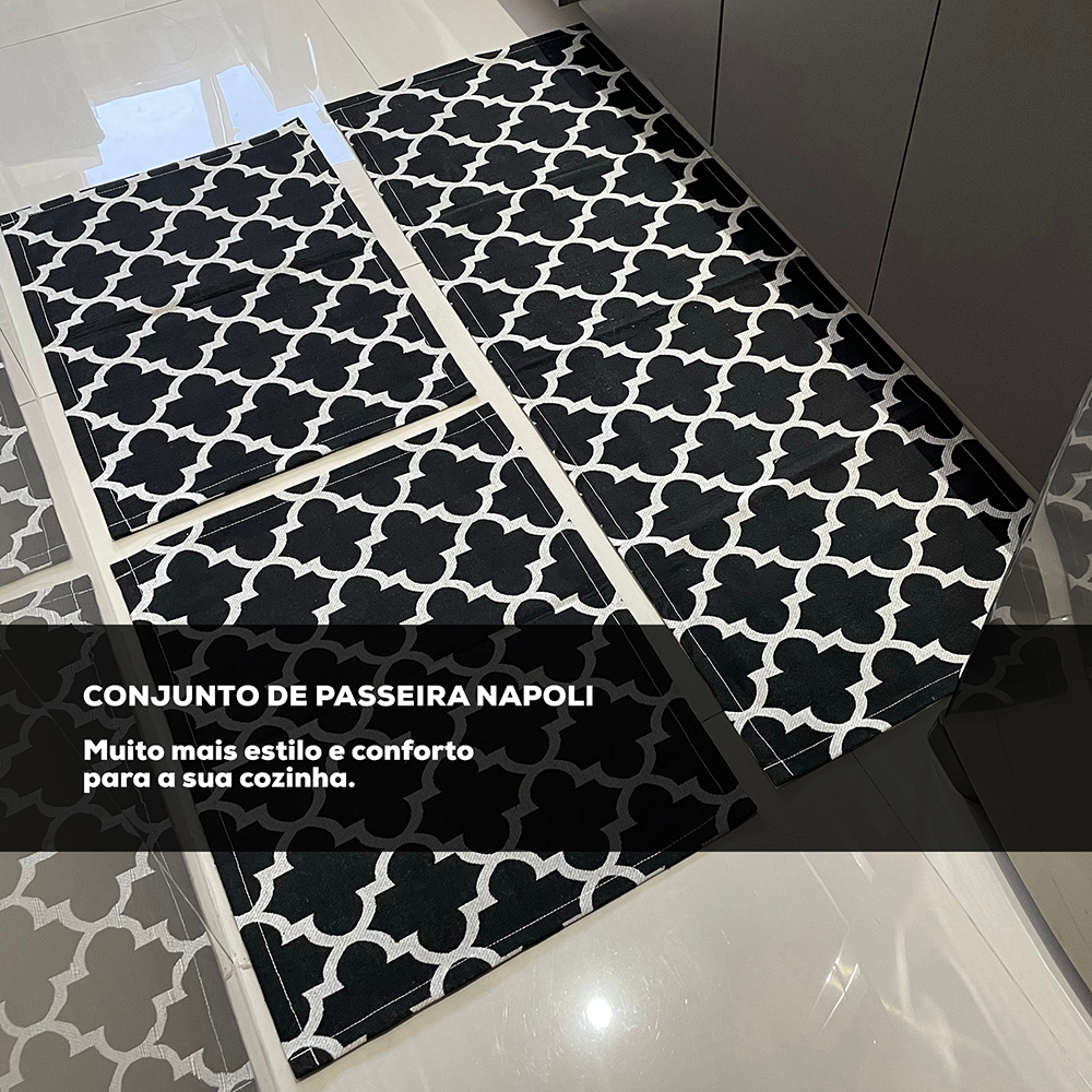 Kit De Tapete Passadeira Para cozinha Antiderrapante 3 Pçs 1 Passadeira e 2 Tapetes