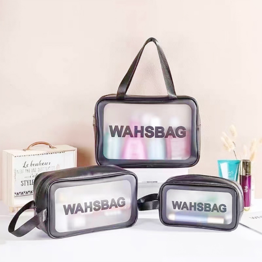 Kit 3 Bolsa de Higiene Pessoal Transparente para Maquiagem Feminina Impermeável T-364-38-1-2-3