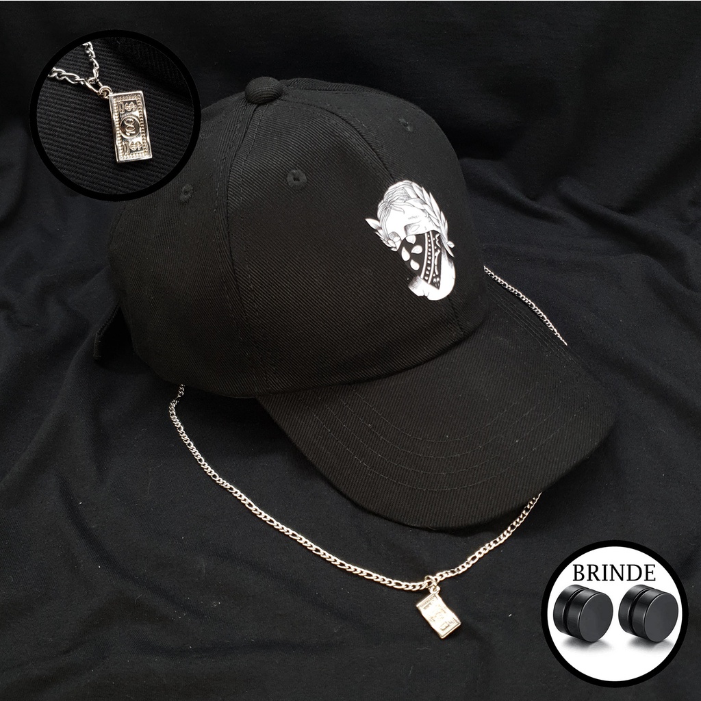 Kit Boné Dinheiro Face do Real + Colar Nota de Dinheiro 3x1 3mm de Aço inox Cirúrgico Boné Modelo Baseball Strapback