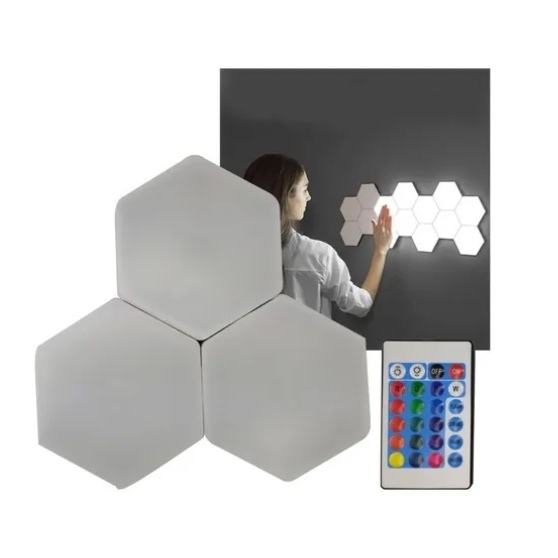 Luminaria Parede Teto Hexagonal Com Luz Led Controle Rgb 16 cores 3 unidade