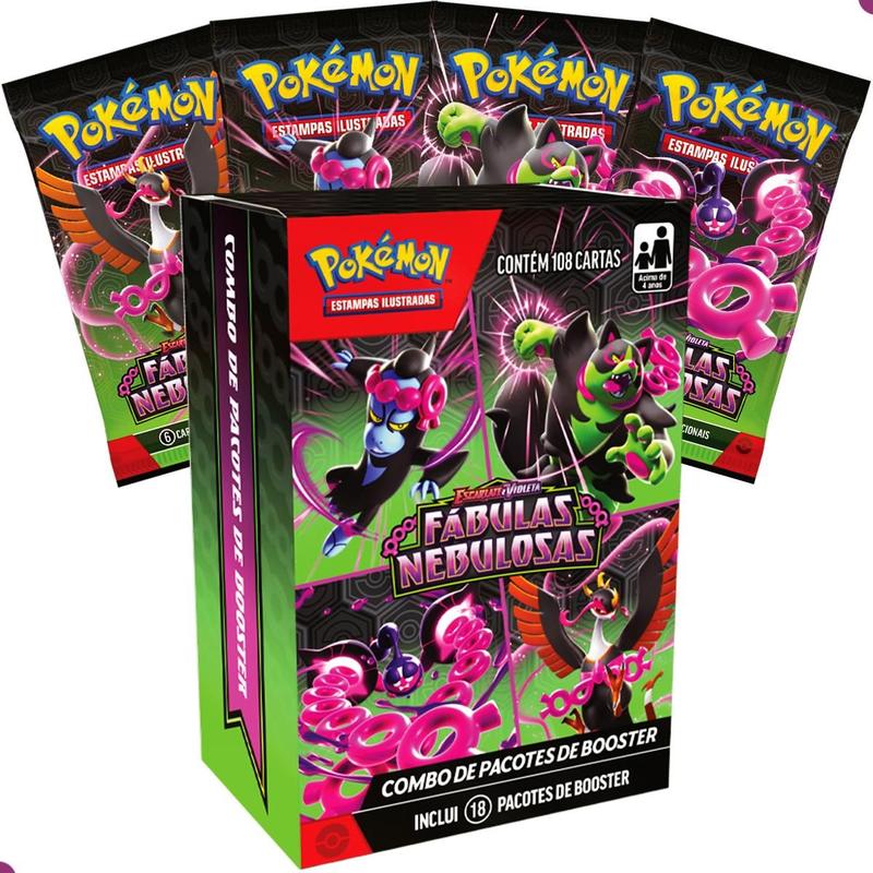 COMBO DE BOOSTER MINI DISPLAY 18 PACOTES FÁBULAS NEBULOSAS EV6.5 COPAG 108 CARTAS POKÉMON TCG BOX