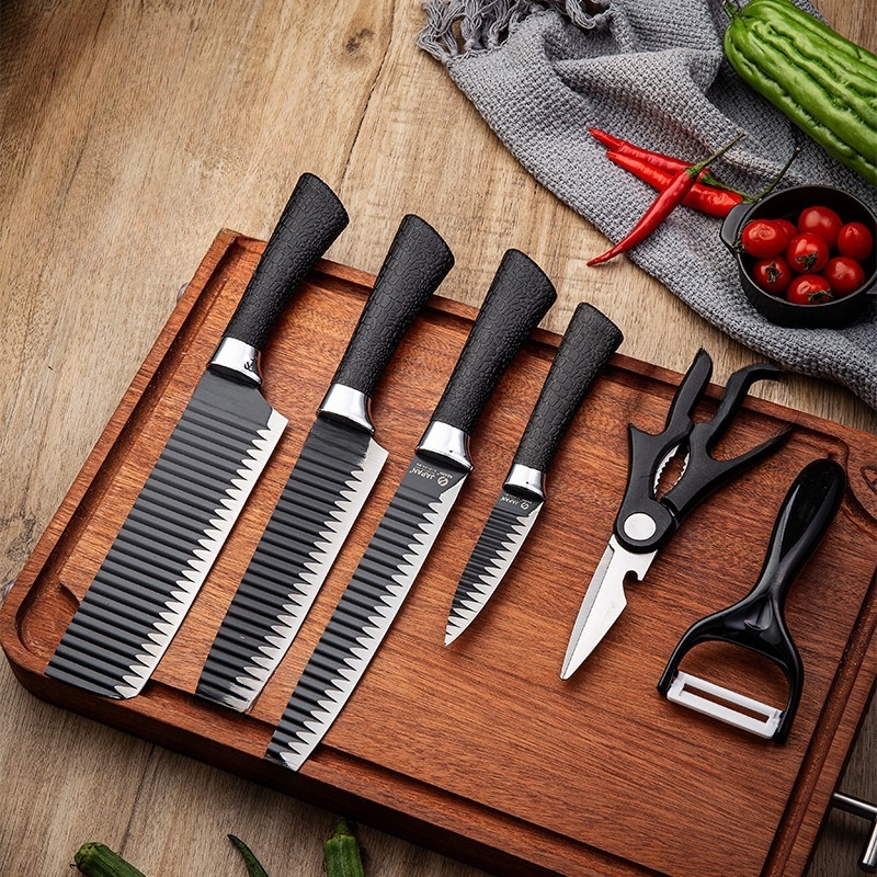 Kit Conjunto de facas antiaderente kit 6 peças Chef cozinha aço inoxidável churrasco profissional mais tesoura e descascador de legumes