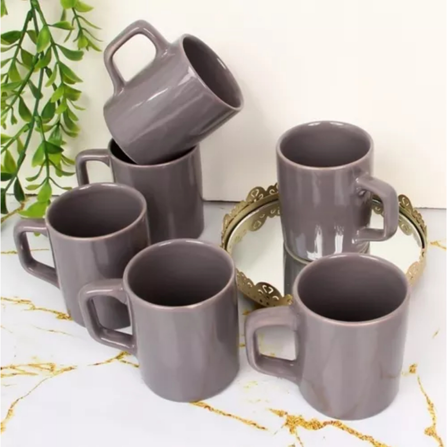 Jogo De Xícaras 90ml Em Cerâmica Café Chá 6 Peças Em Cinza Mesa Posta Cozinha Conjunto de Xicara