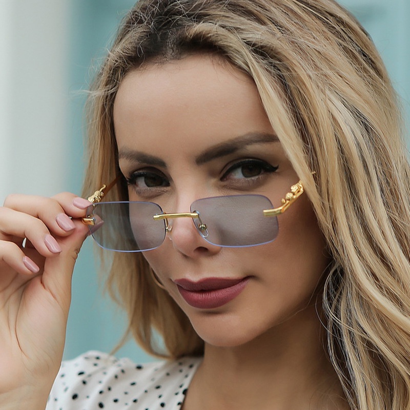 Óculos De Sol Masculinos UV400 Rectangulares Femininos Sem Moldura Retro Cheetah Decoration Transparent Ocean Lens