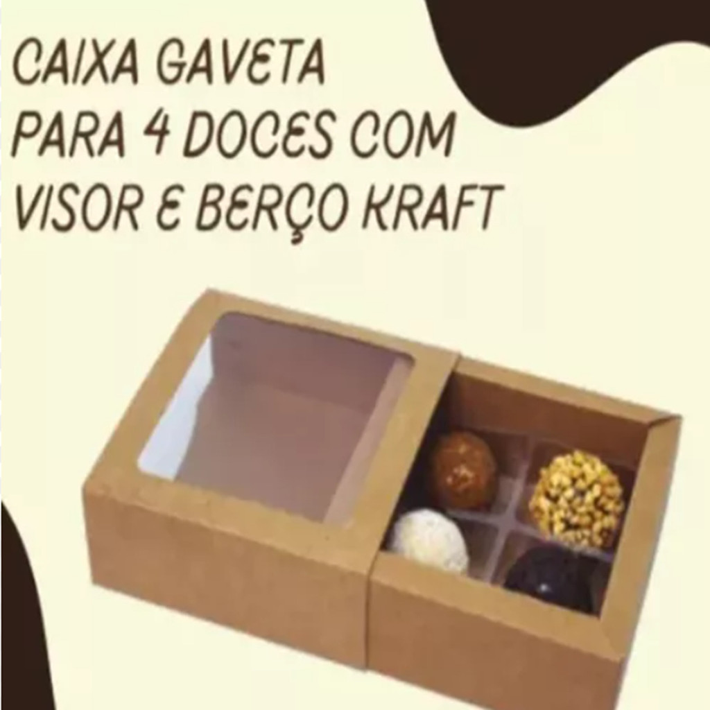 5 Caixas Kraft Com Berço Para Doces finos Com 4 Cavidades