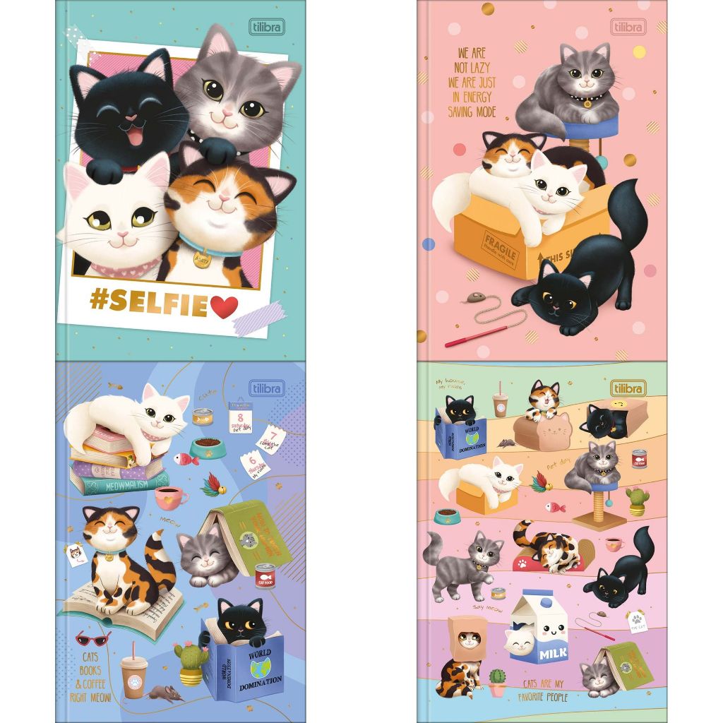 Caderno 1/4 Brochura Purrfect Cats 80 folhas 14 x 20 cm - Tilibra