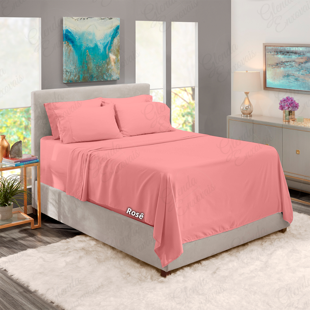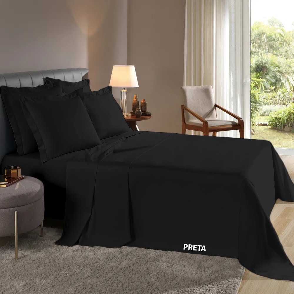 Jogo de Cama Lençol Ponto Palito Percal 400 fios Basic Queen 4 Peças Toque Macio