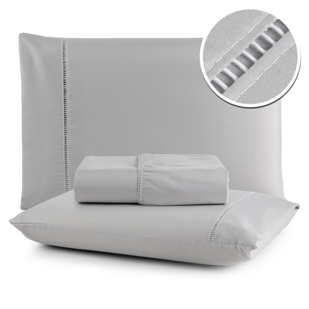 Jogo De Lençol Cama Box Casal 4 Peças Percal 400 Fios Toque Macio Cinza