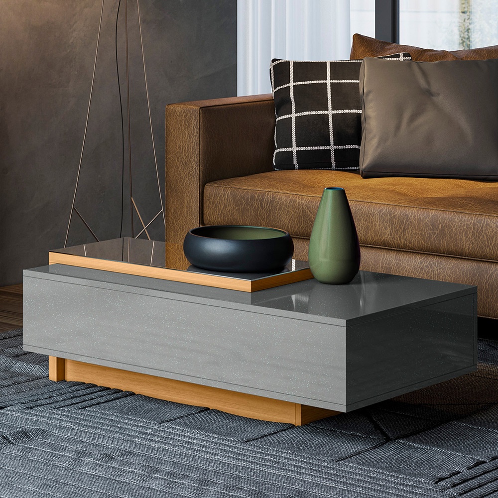 Mesa De Centro Milão Com Espelho Para Sala de Estar Moderna - Lukaliam Móveis