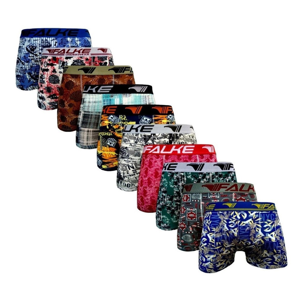 Kit com 10 Cuecas Boxer Adulto Envio Imediato microfibra cores e estampas variadas