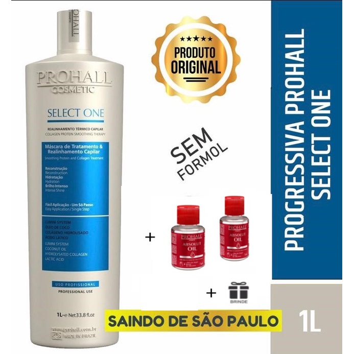 Prohall Escova Select One Progressiva - 1 Litro + Sache + Óleo + Kit Aplicação + Pente