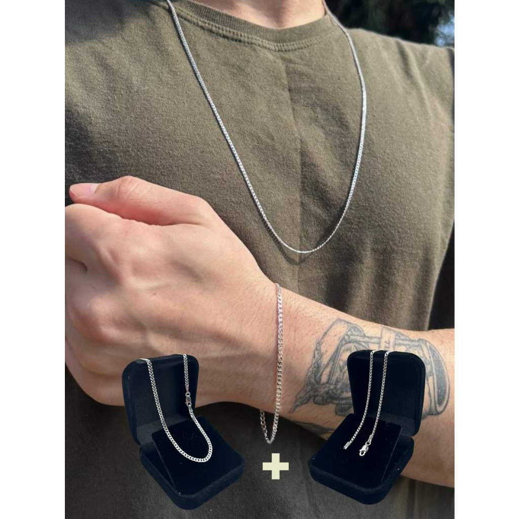 Kit Colar E Pulseira Masculino Conjunto Corrente Prata 925 De Ouro 18k