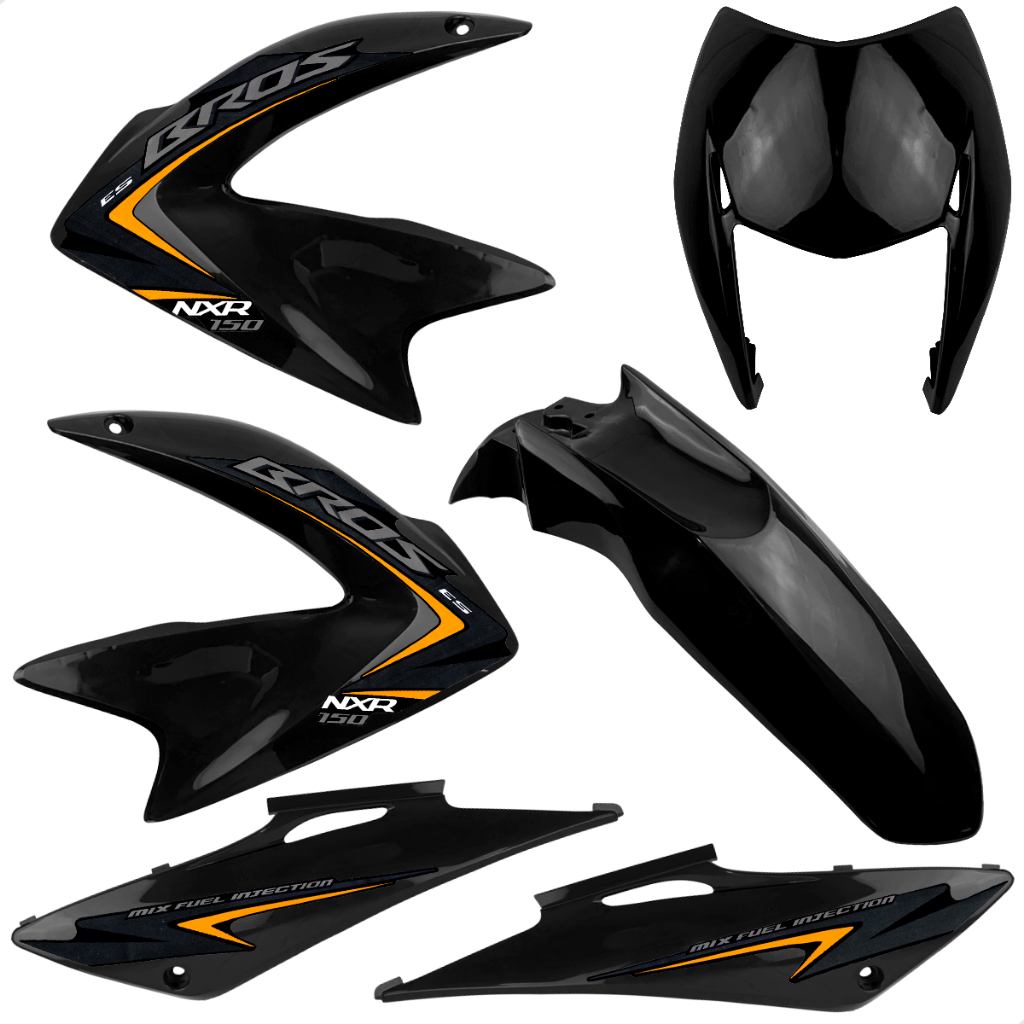 Kit Carenagem Completo Nxr 150 Bros Preta 2011 Ks Es Esd Com Adesivos