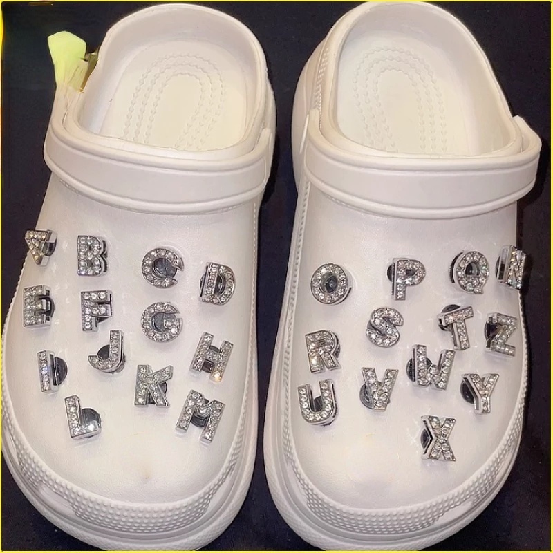 Prata Diamante Bordado croc Acessórios Letras De Metal jibits Letter Buckle Shoes De Decoração Pinos Para As Mulheres