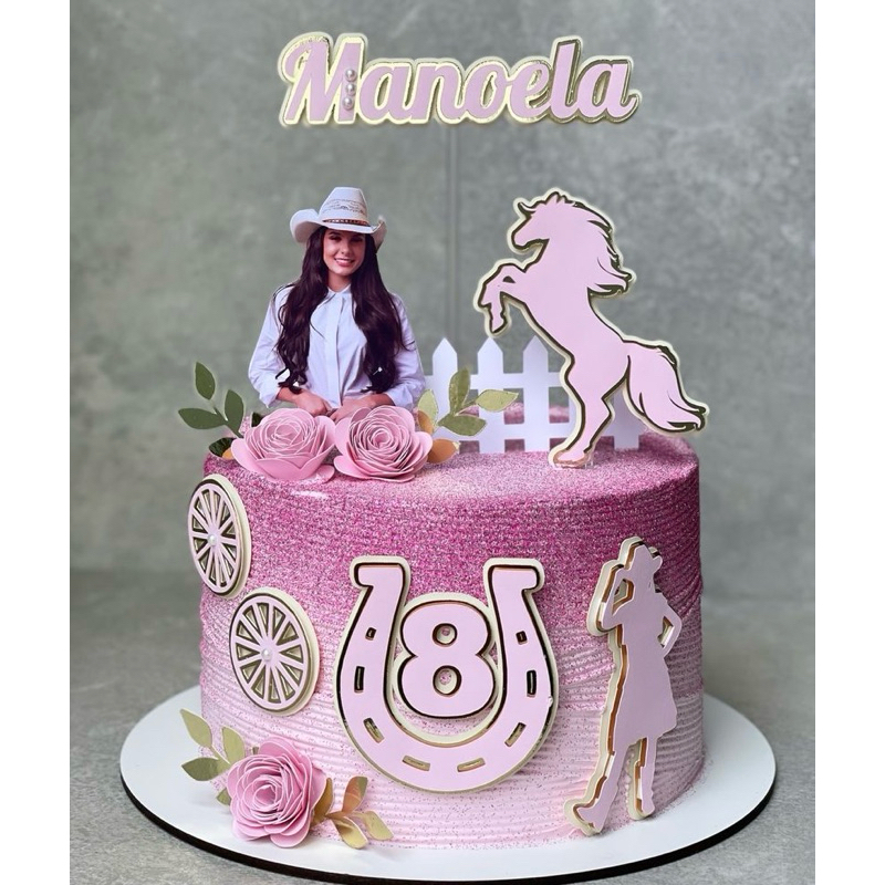topper topo de bolo personalizado em camadas Ana Castela boiadeira 3d - nome e idade