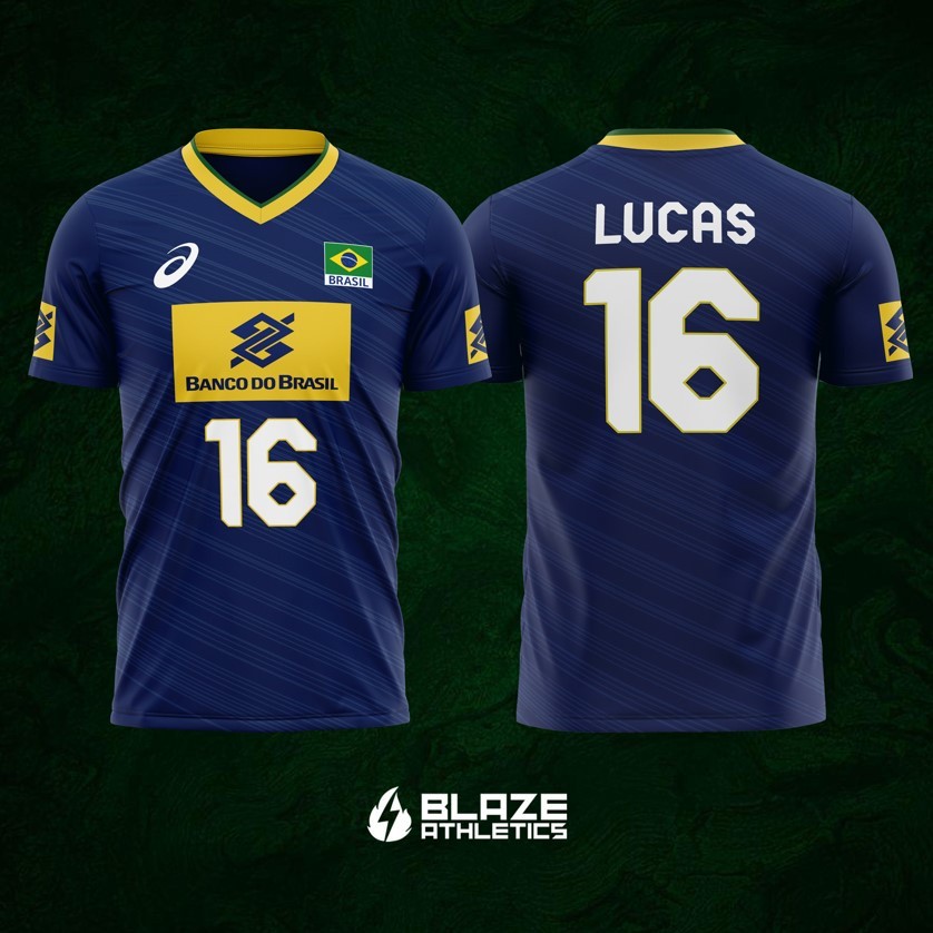 Terno De Vôlei Brasileiro Azul Com Nome Personalizado Camiseta 3D De Verão