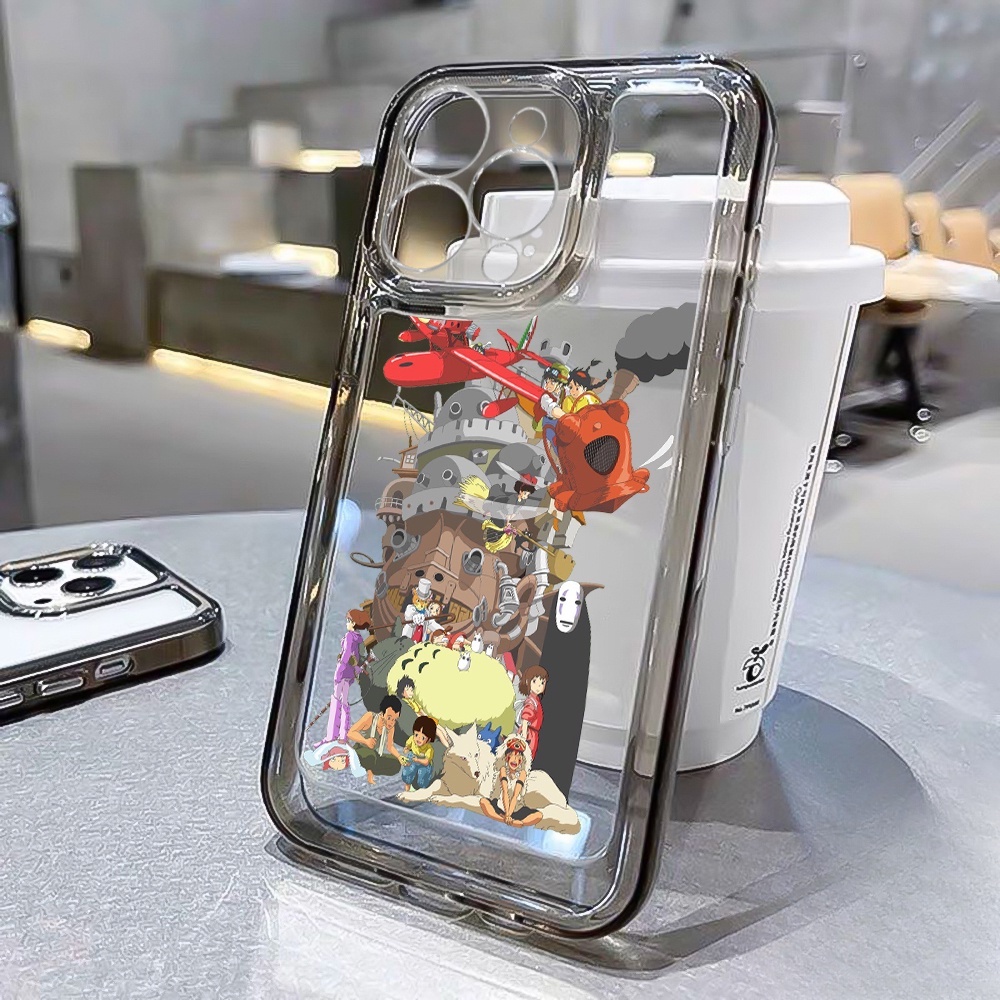 Studio Ghibli Anime capa de telefone compatível com iPhone 14 Pro Max 15 11 12 13 7 8 Plus XR X XS 12pro 15plus 14plus proteção de lente resistente a choque TPU capa transparente OCBT