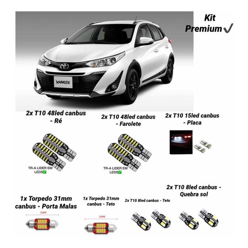 Kit Lampadas Led Internas Teto Porta Malas Quebra Sol Toyota Yaris 2019 2020 2021 2022 2023 2024